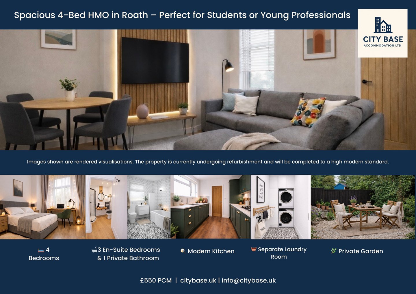 City Base Accommodation Ltd is a local property company specialising in high-quality Houses in Multiple Occupation (HMOs). We focus on providing safe, compliant, and comfortable homes for working professionals and students.